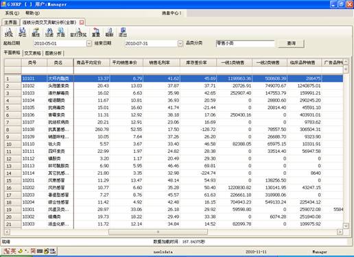 例如上图的“大环内酯类”,商品的平均售价是6.79元,这说明顾客购买此类商品最易接受的价格是在7元左右。主推类商品的定价应该在7元之上,品牌类售价之下。