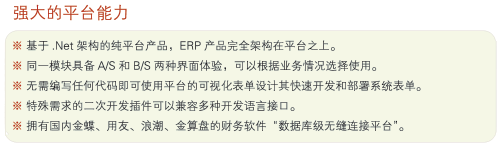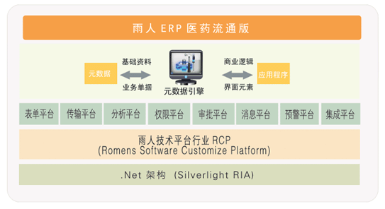 雨人ERP医药流通行业专版是依托 .NET架构、基于Silverlight的RIA新技术、使用SOA架构、在ERP平台RCP (Romens Software Customize Platform)之上构建的平台产品,其科学、完善、全面的平台能力,保证了企业需求的随需而变,帮助企业实现个性化ERP。基于雨人Cloud平台的移动应用,可以使用手机、平板等设备实现随时随地的协同办公。